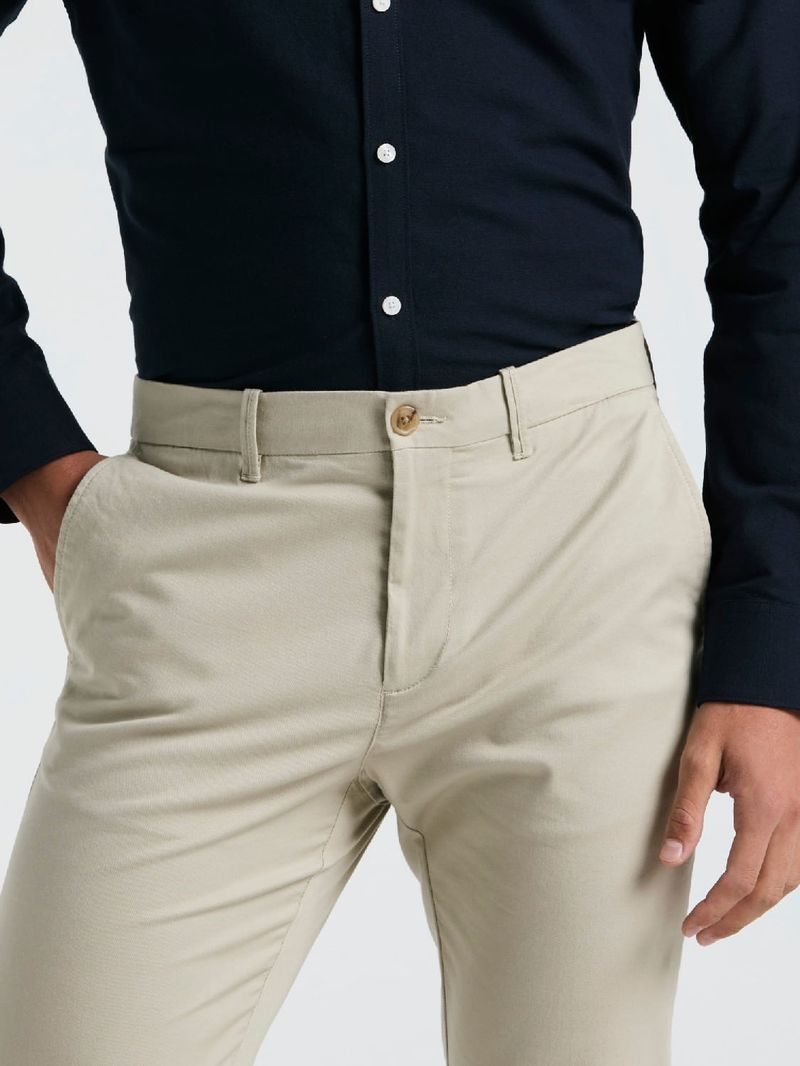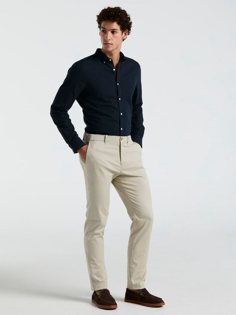 Pantalón chino para hombre con bolsillos delanteros diagonales, cierre y botón en la cintura. Logo bordado a tono. Confeccionado en 98% algodón y 2% elastano para mayor confort y flexibilidad.