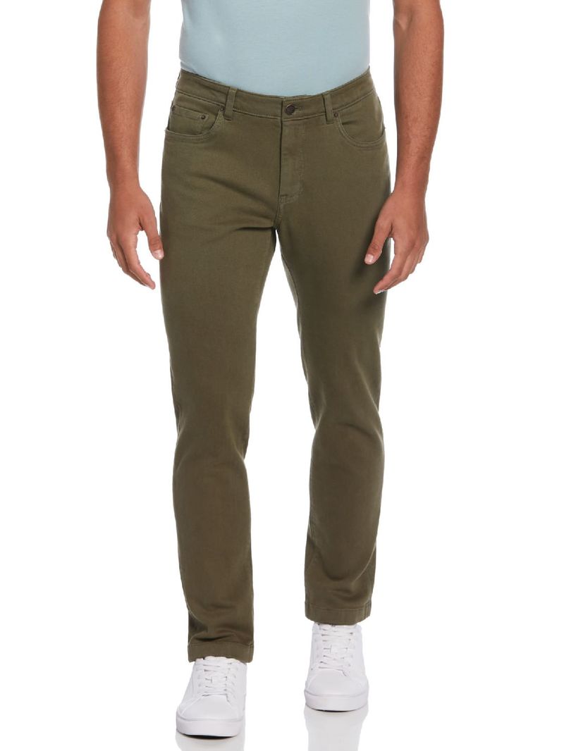 Pantalón de 5 bolsillos en denim con cierre y botón en la cintura. Detalles de remaches metálicos en los bolsillos y aplique de cuero con logo en la parte trasera. Calce slim taper fit, más holgado en cadera y muslos, afinándose hacia el tobillo.