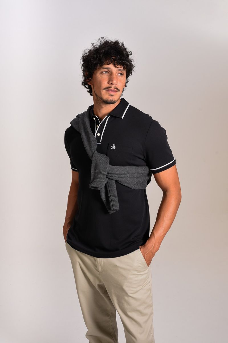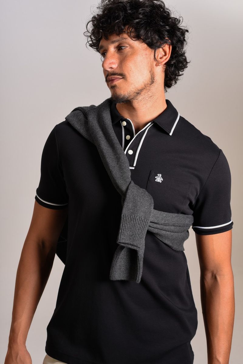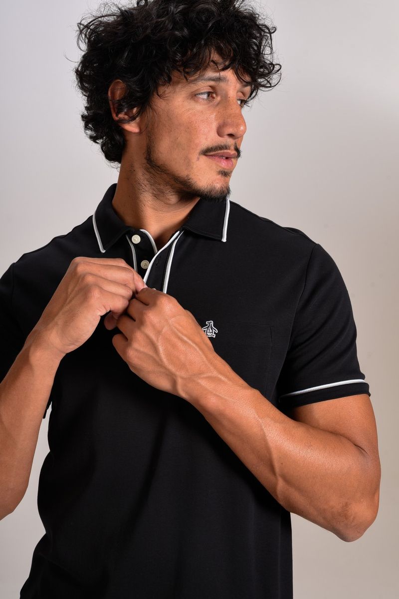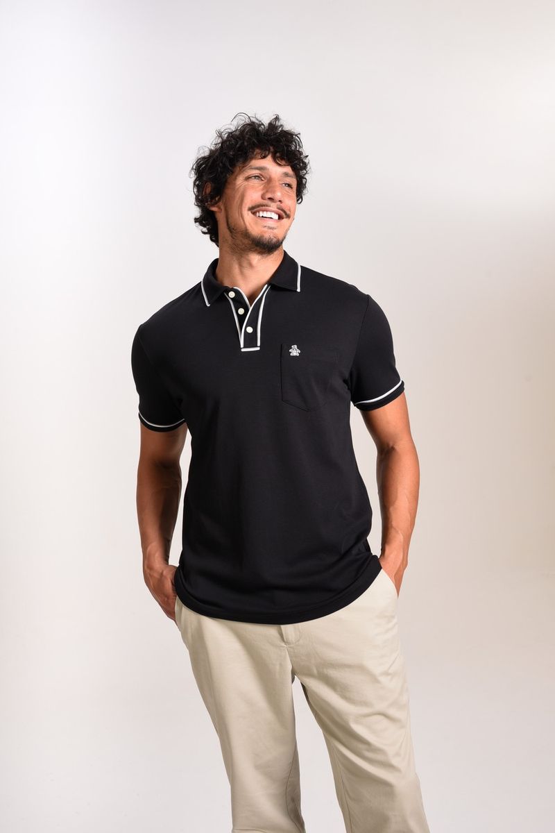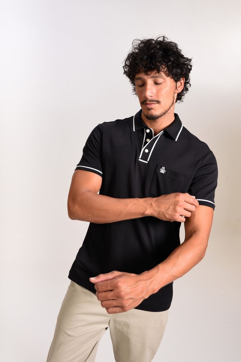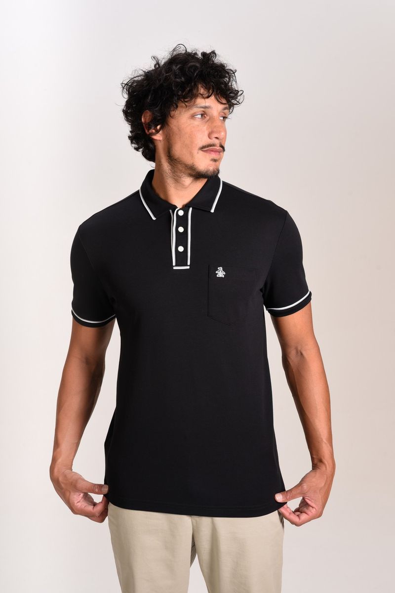 Polo de manga corta en interlock con vivos Earl y logo Sticker Pete. Un básico actualizado. • Tejido interlock suave. • Tapeta con botones y cuello Earl. • Apto para lavado en máquina.