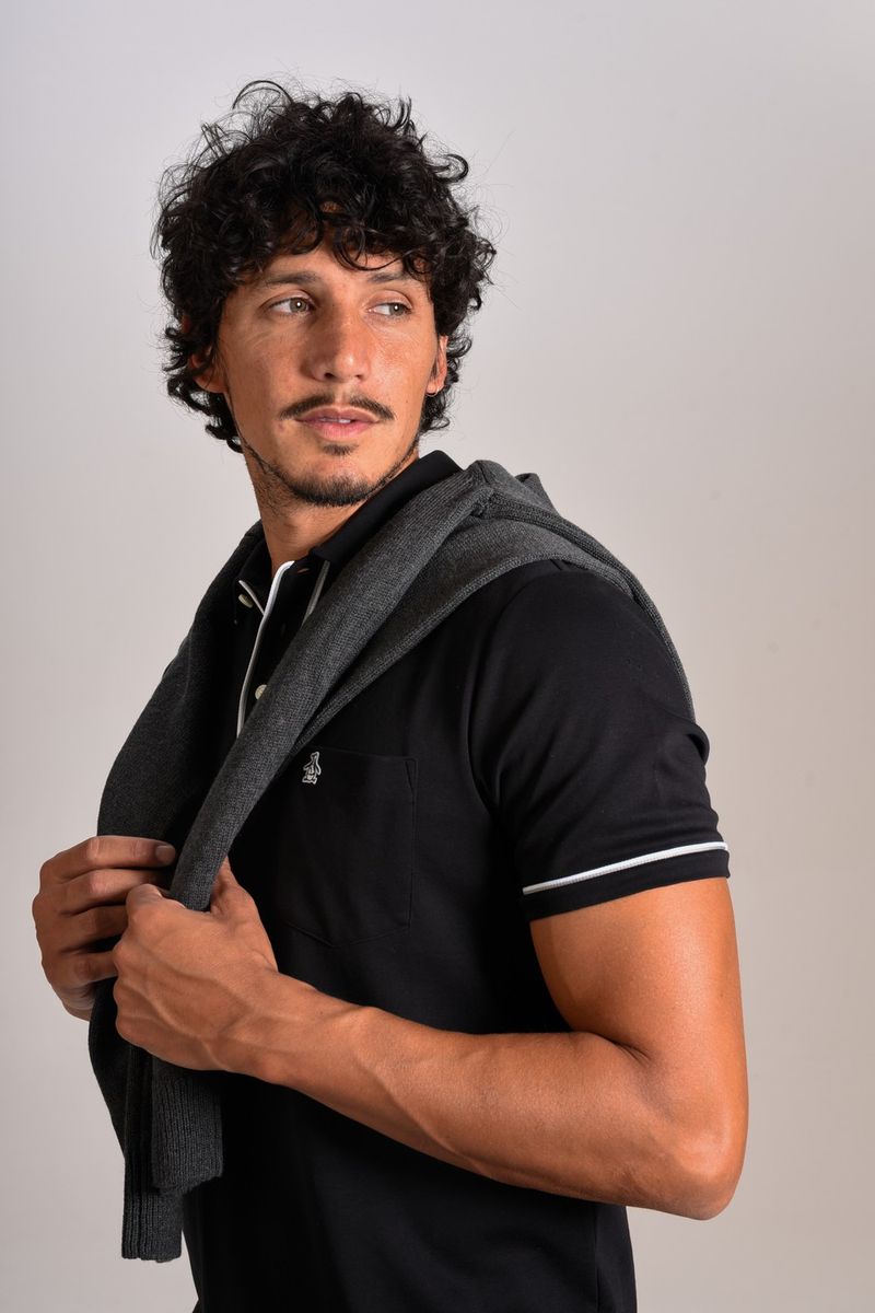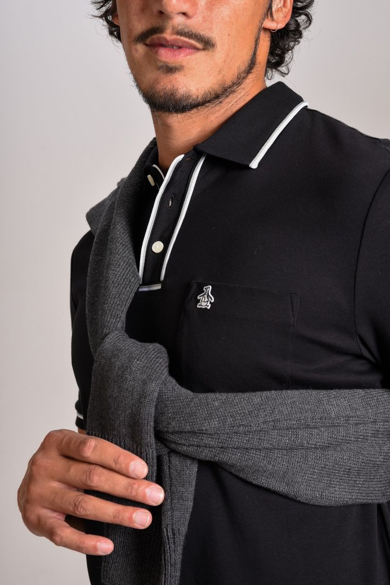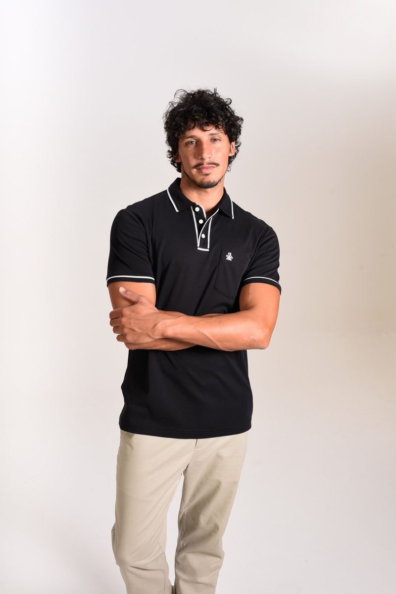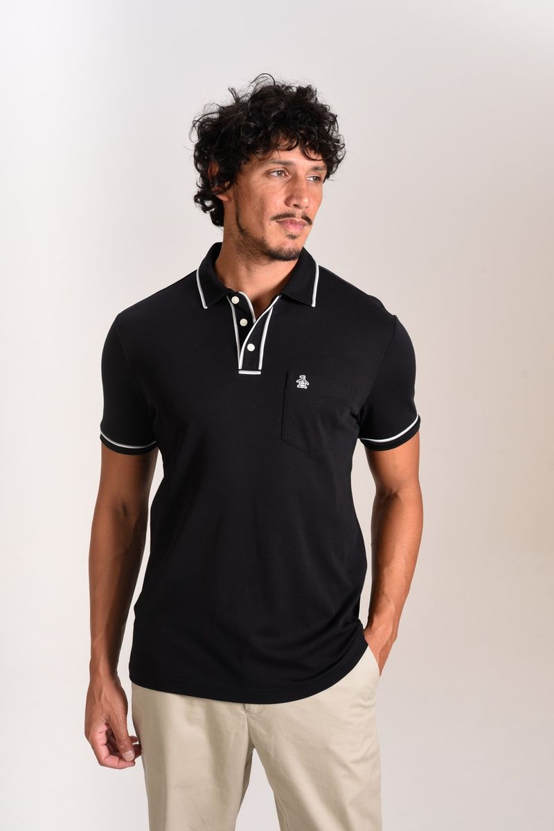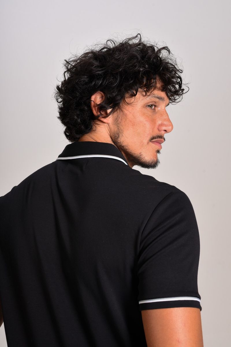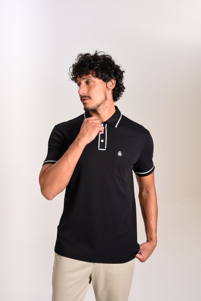 Polo de manga corta en interlock con vivos Earl y logo Sticker Pete. Un básico actualizado. • Tejido interlock suave. • Tapeta con botones y cuello Earl. • Apto para lavado en máquina.