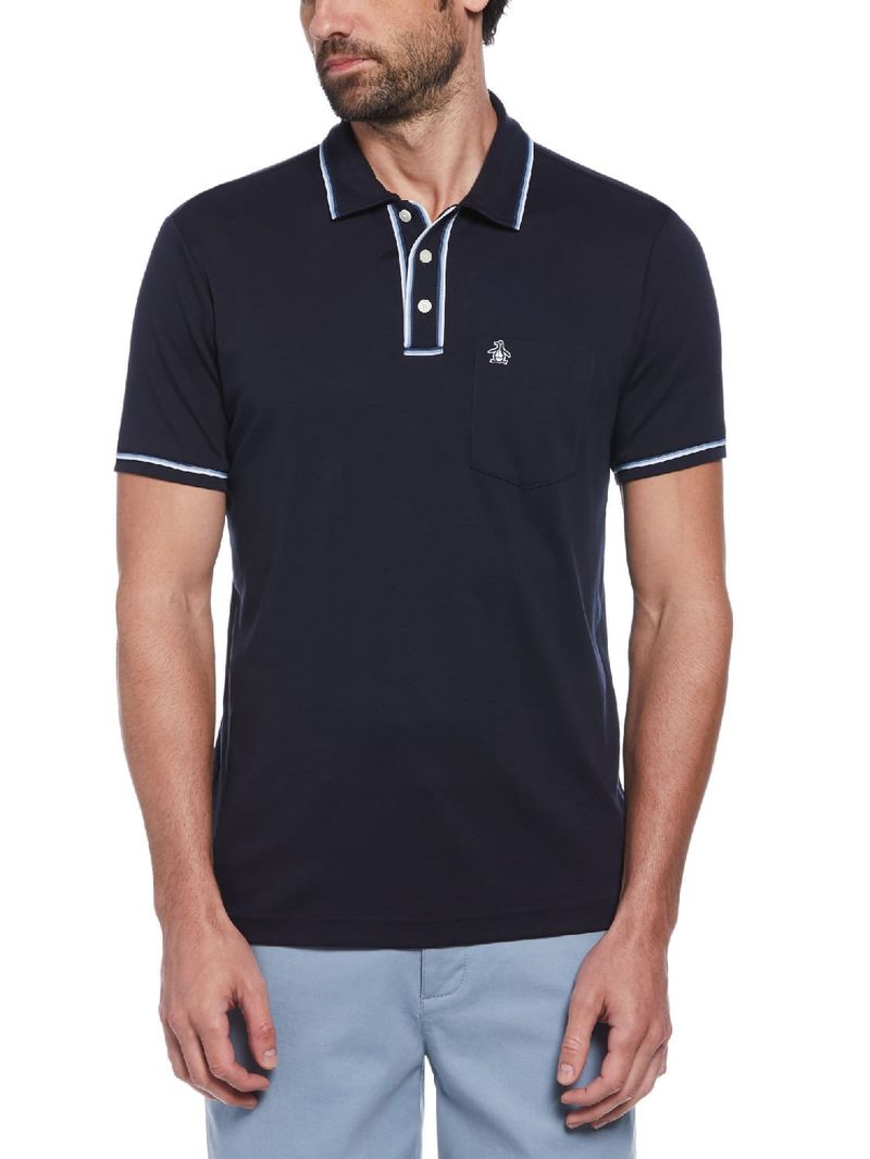 Polo de manga corta en interlock con vivos Earl y logo Sticker Pete. Un básico actualizado.
